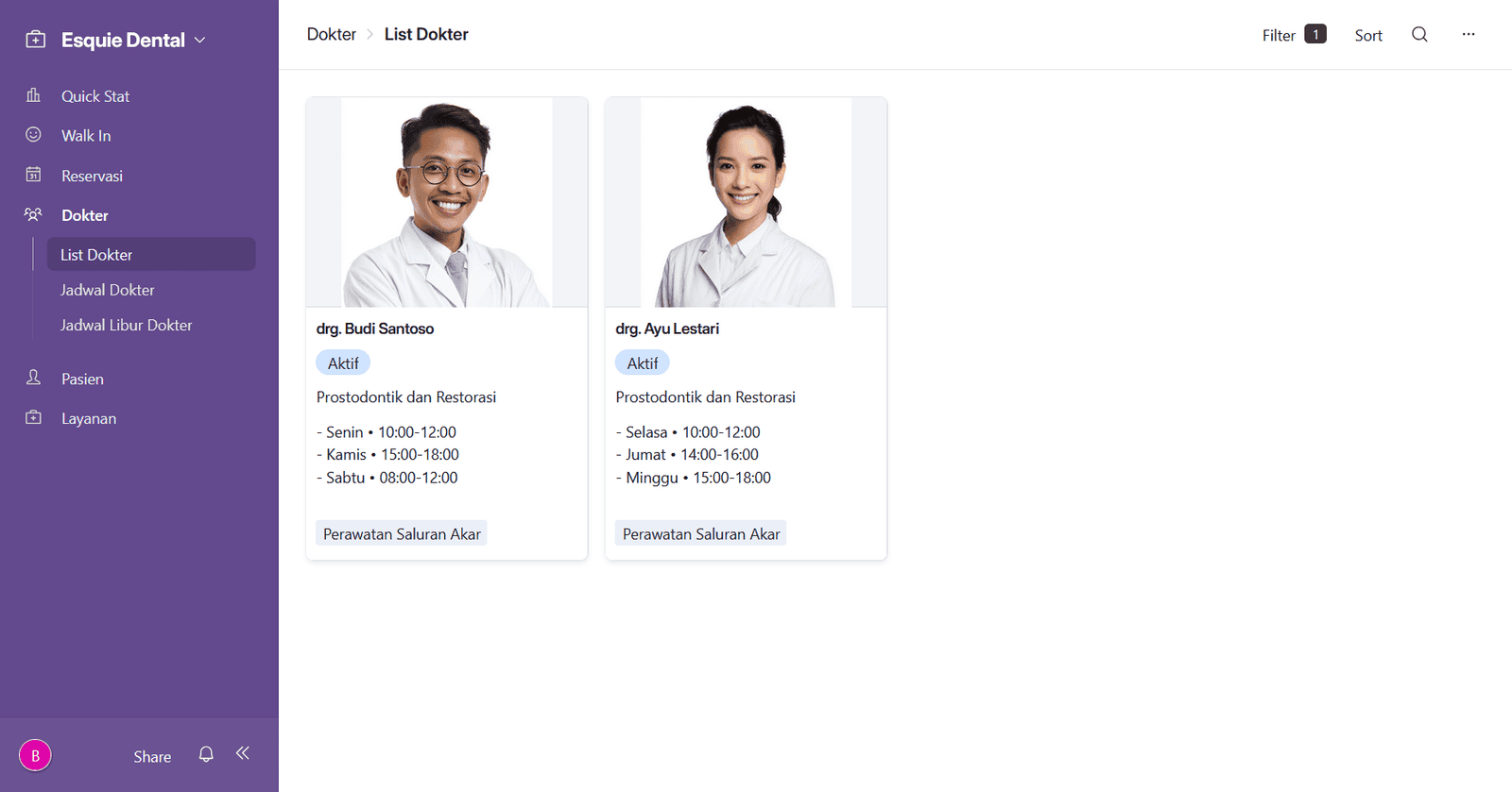 - Kelola booking, jadwal dokter, chat pasien dengan mudah